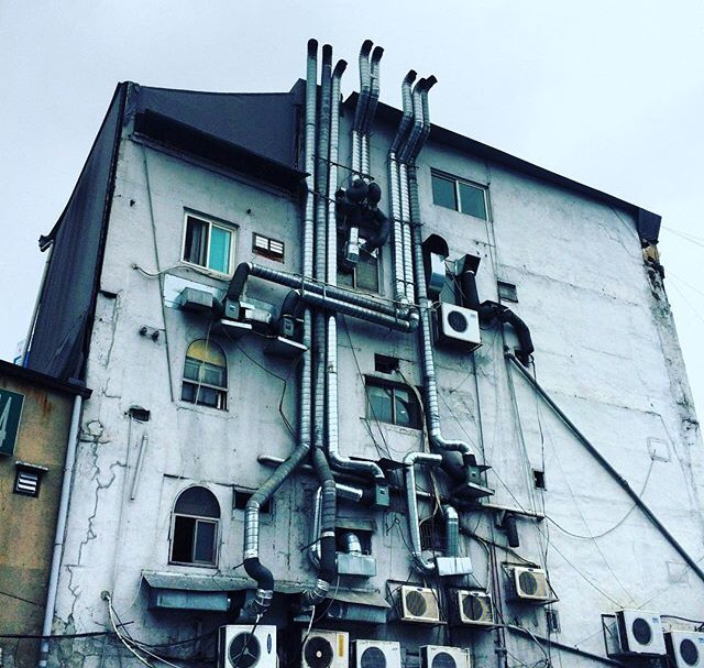 Contrast this to the below K building which is apparently loved by the Koreans. It is the opposite to what is found in the back streets. It is the image that South Korea wants to portray to the world. Scale. Glass curtain walls. Dominance. Ability. They can make a K shaped building for goodness sake! It portrays wealth. But to me it is still aesthetically ugly. Even more so than my aforesaid exposed airconditioning unit find!