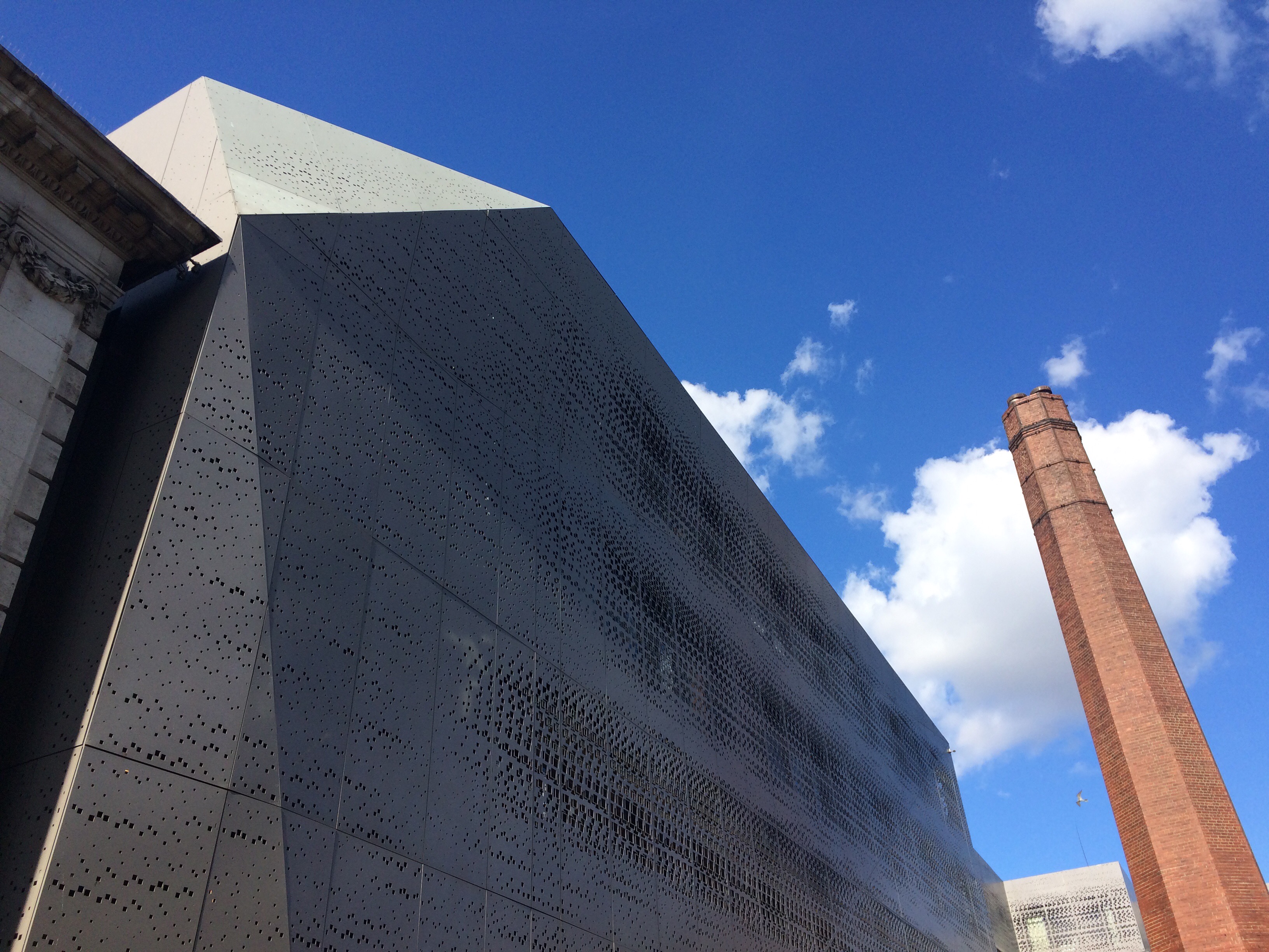 Here’s a few faves from London so far. The first was stumbled upon near Bethnal Green. I love how the steel cut cladding has transformed the back section of the original building into a progressive new space.