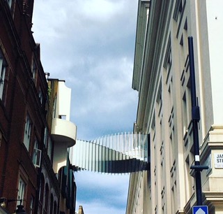 As for the middle image this building is near Old Street and again its angles provide an optical illusion. Lastly, a cross building walkway twisting the span of two heritage buildings in Soho. Angles, twists and optical illusions. I’m sensing a love of them here in London and I love it!