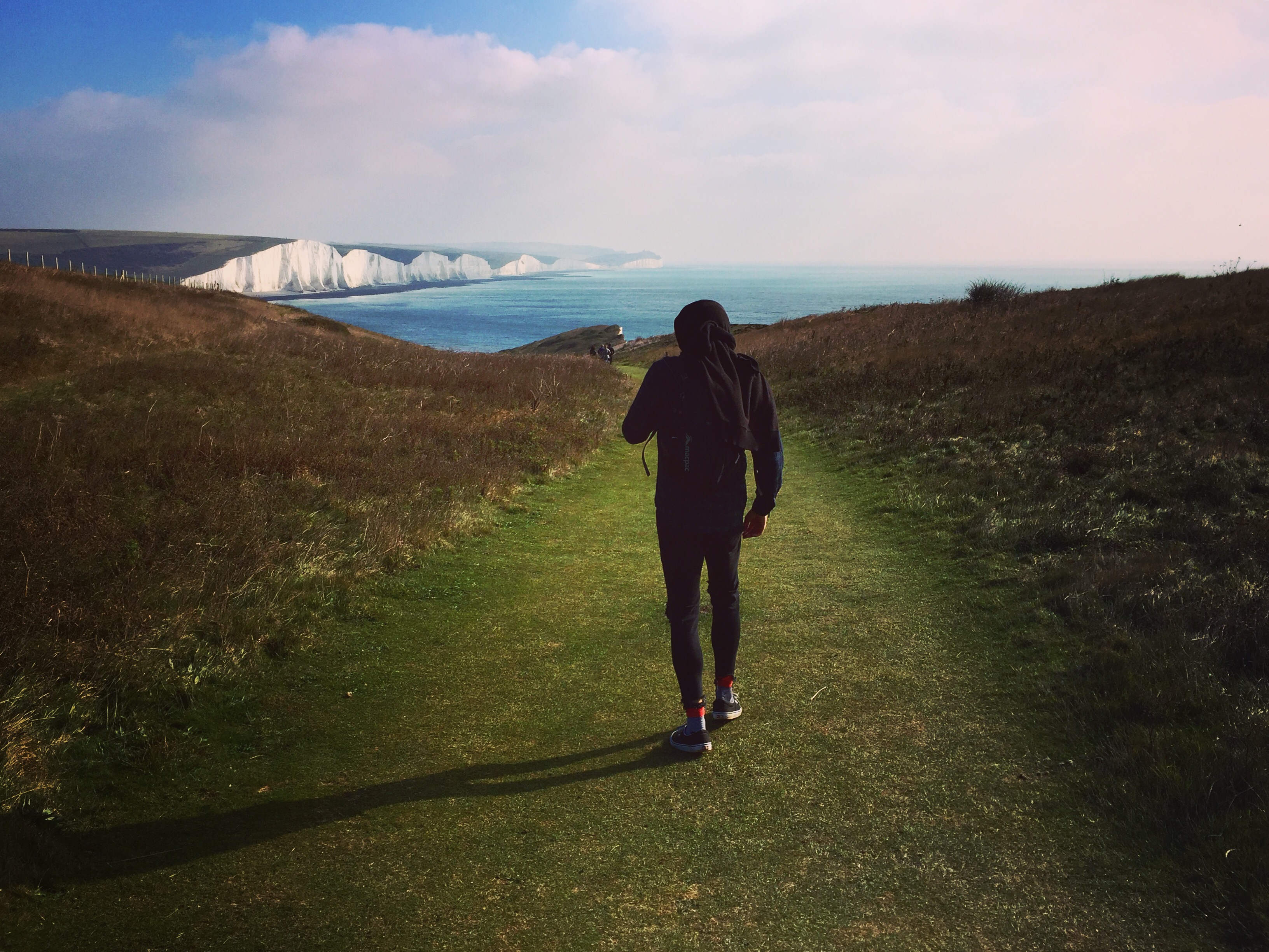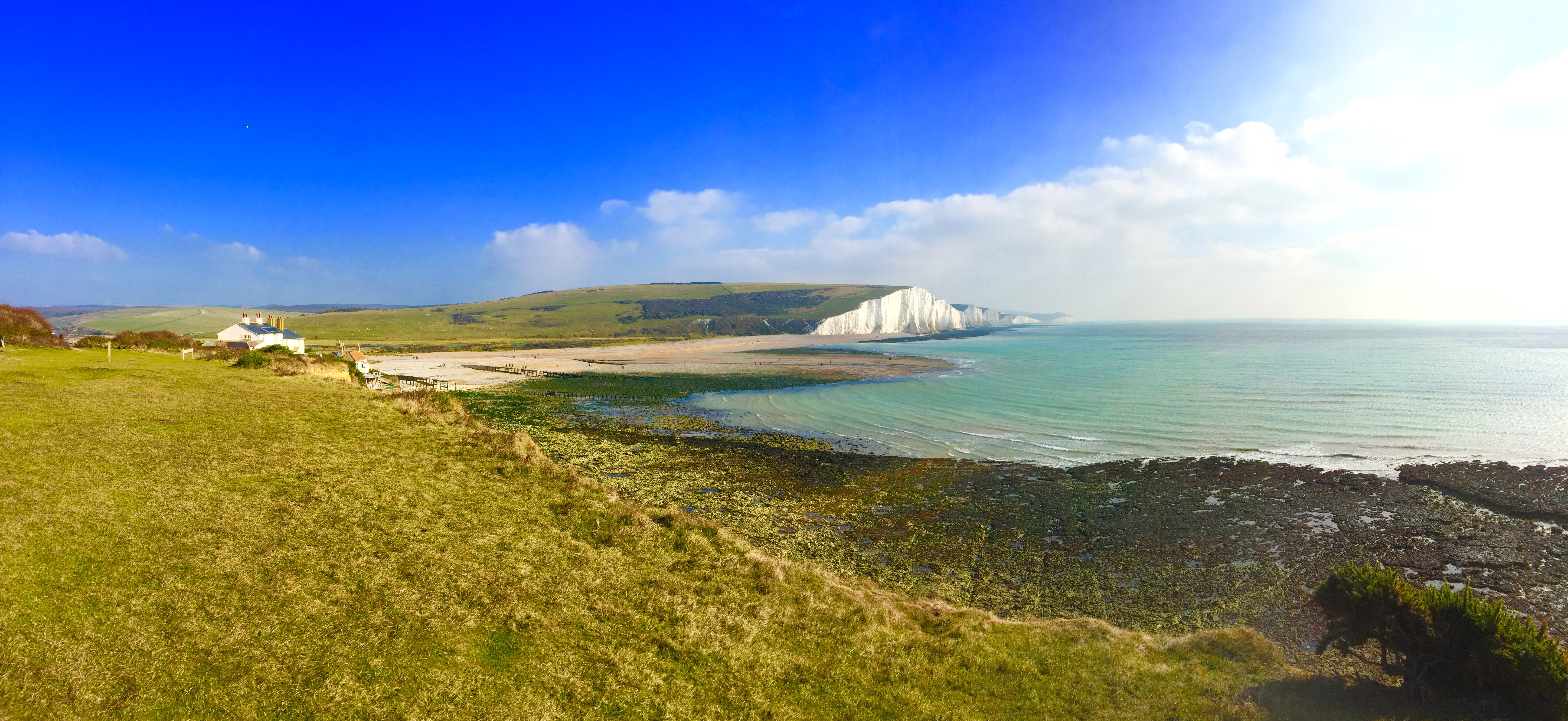 Cue the Seven Sisters. Giant chalk white cliffs that flank the coastal stretch between Seaford and Eastbourne.