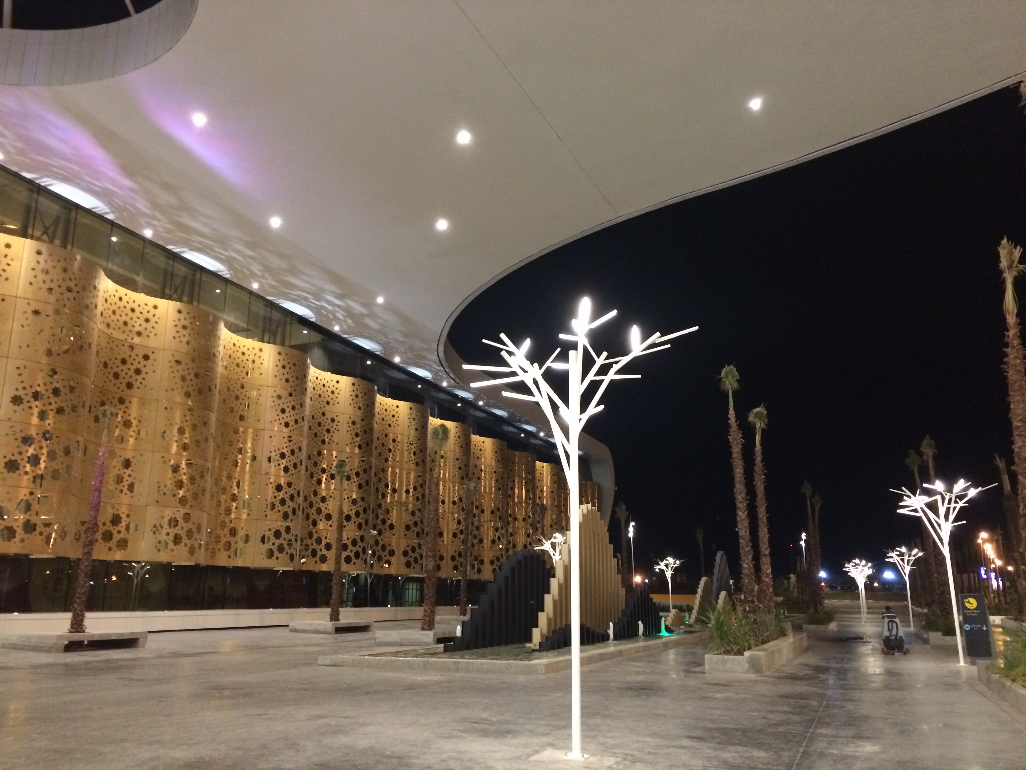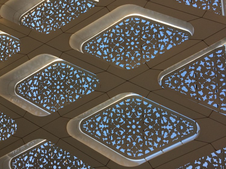 Arriving at night, my first impression is the airport and how incredible the architecture is! Amazing roof structure, external metallic cladding with Arabic stars and shapes imprinted, solar trees outside and futuristic curves. Later I have to find out who is responsible and all credit goes to… E2a architects based in Switzerland (really thought it would be Dubai based but oh so wrong). I am actually blown away by how impressive it is and how much money must have gone into the structure.